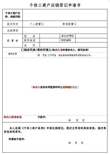 說明:《個體工商戶注銷登記申請書》的電子表格,點擊本篇左下角“閱讀原文”可直接打開下載該表格(手機上下載電子文檔辦公軟件就可以,該表格是放在“百度網(wǎng)盤”上的)。歡迎在文右底部“留言”